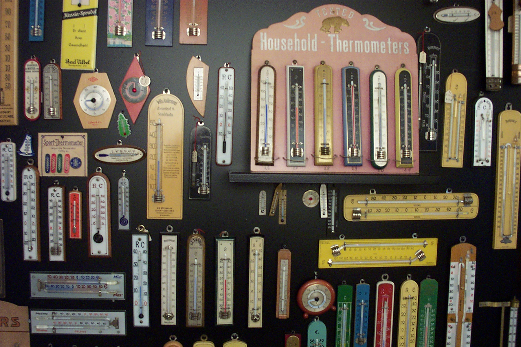 Thermometer der verschiedensten Formen, Größen und Arten können bestaunt werden. Dabei kommen die Anwendungsgebiete nicht zu kurz, auch hier ist der Besucher gefragt und kann ausprobieren.